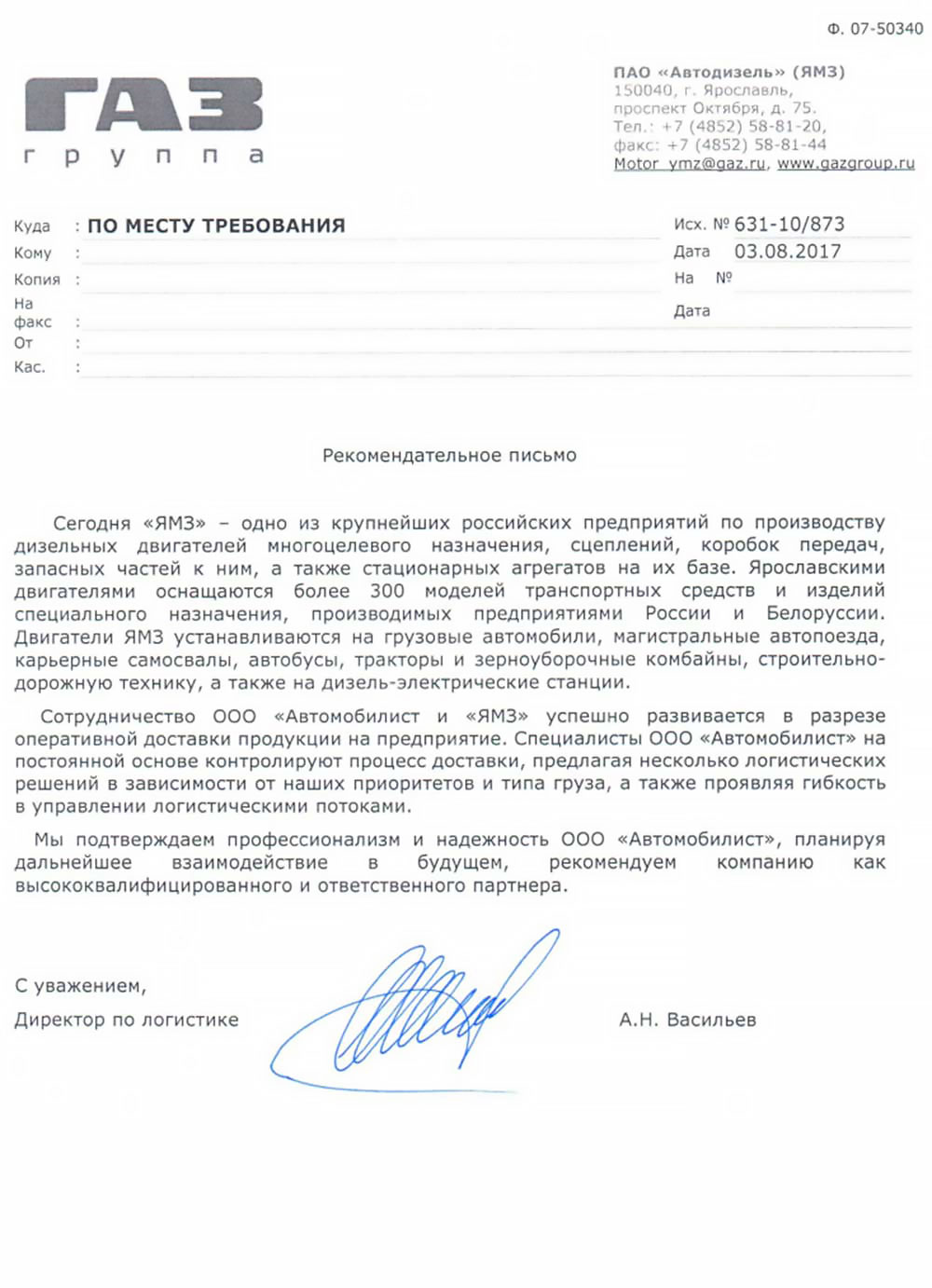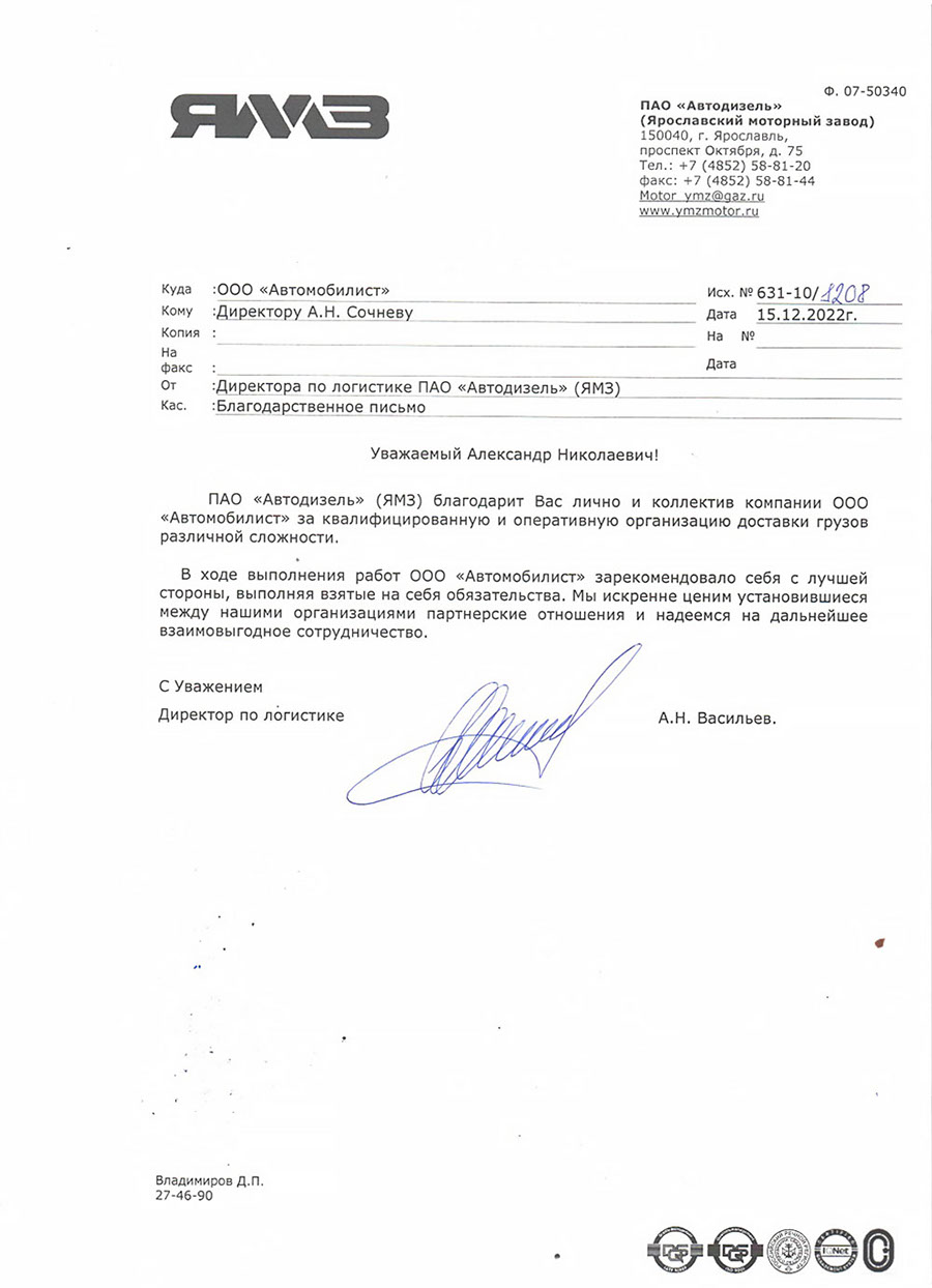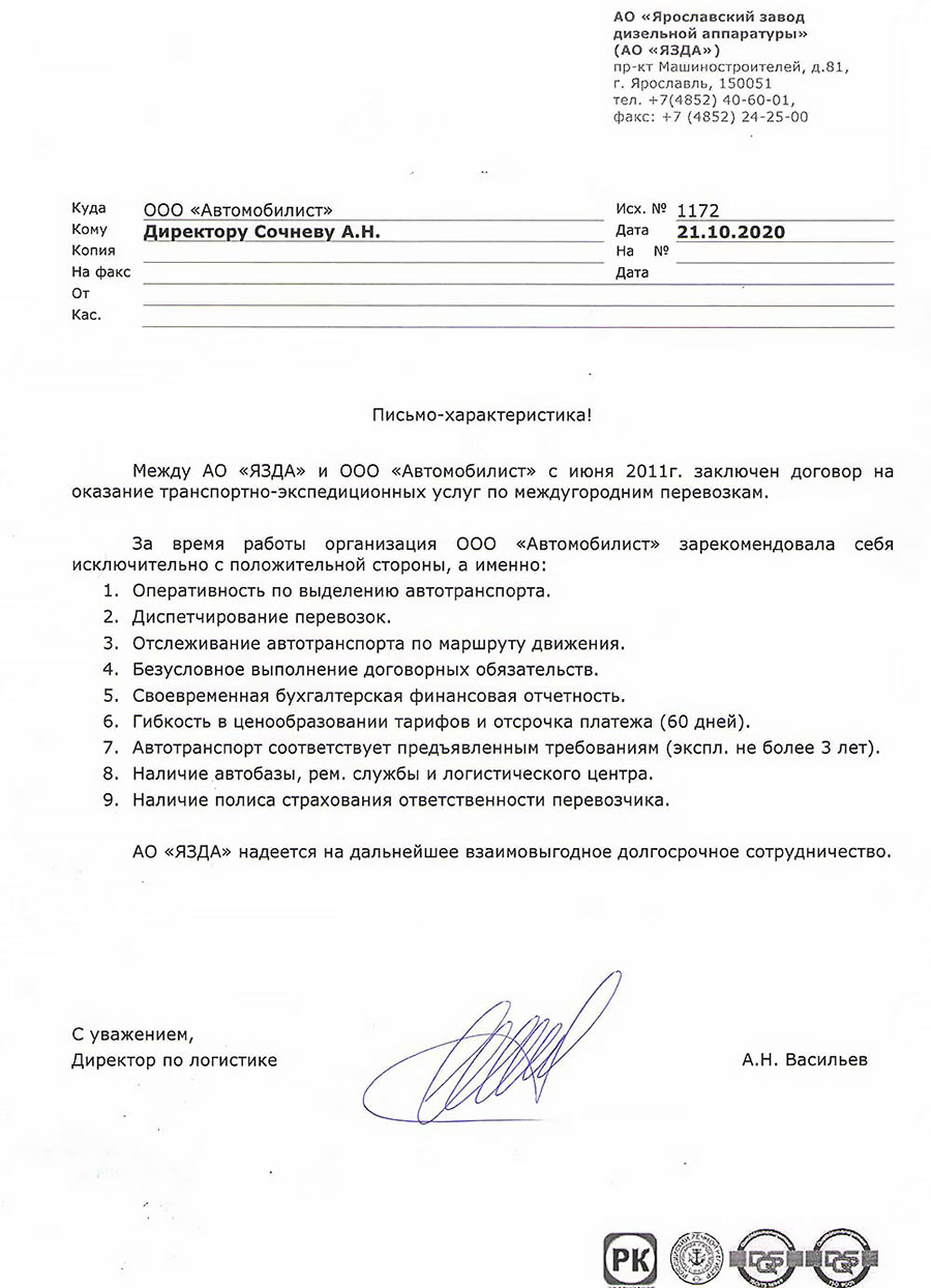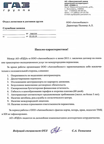 В результате многолетнего сотрудничества с такими крупными предприятиями России как: ООО «Автомобильный завод ГАЗ», ООО «Нижегородские моторы», АО «Ульяновский моторный завод», АО «Саранский завод автосамосвалов», ООО «Ликинский автобусный завод», ООО «Павловский автобусный завод», АО «Автомобильный завод УРАЛ», АО «Ярославский завод дизельной аппаратуры», Ярославский моторный завод  ПАО «Автодизель», АО «Ярославль-Резинотехника» , АО «Канашский автоагрегатный завод», АО «Русские краски» , ООО « Ярославская лакокрасочная компания» и др., наша компания зарекомендовала себя как надежный и ответственный партнер.