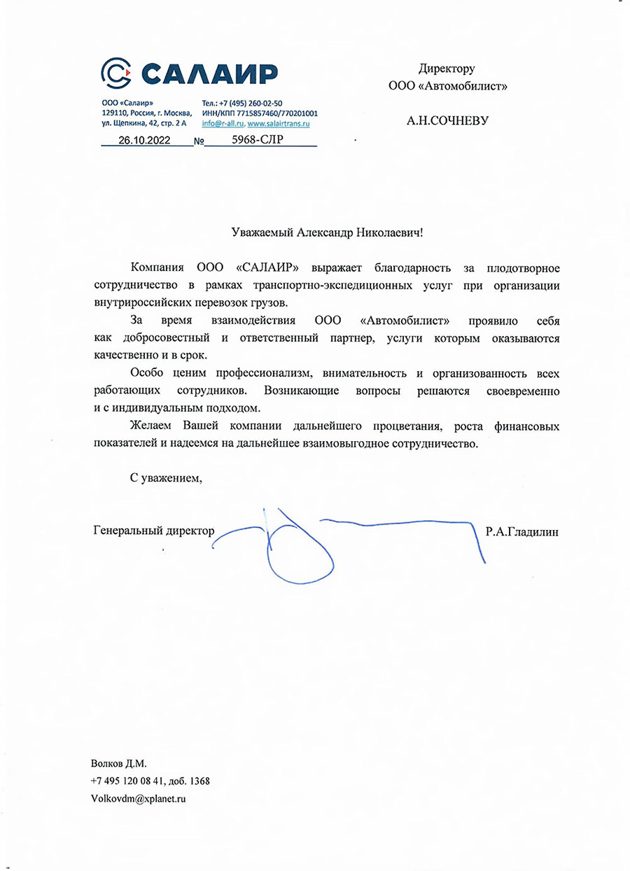 В целях расширения деятельности, предлагаем сотрудничество в области доставки грузов, гарантируем индивидуальный подход, качественное выполнение поставленных задач. Надеемся на долгосрочное и взаимовыгодное сотрудничество!